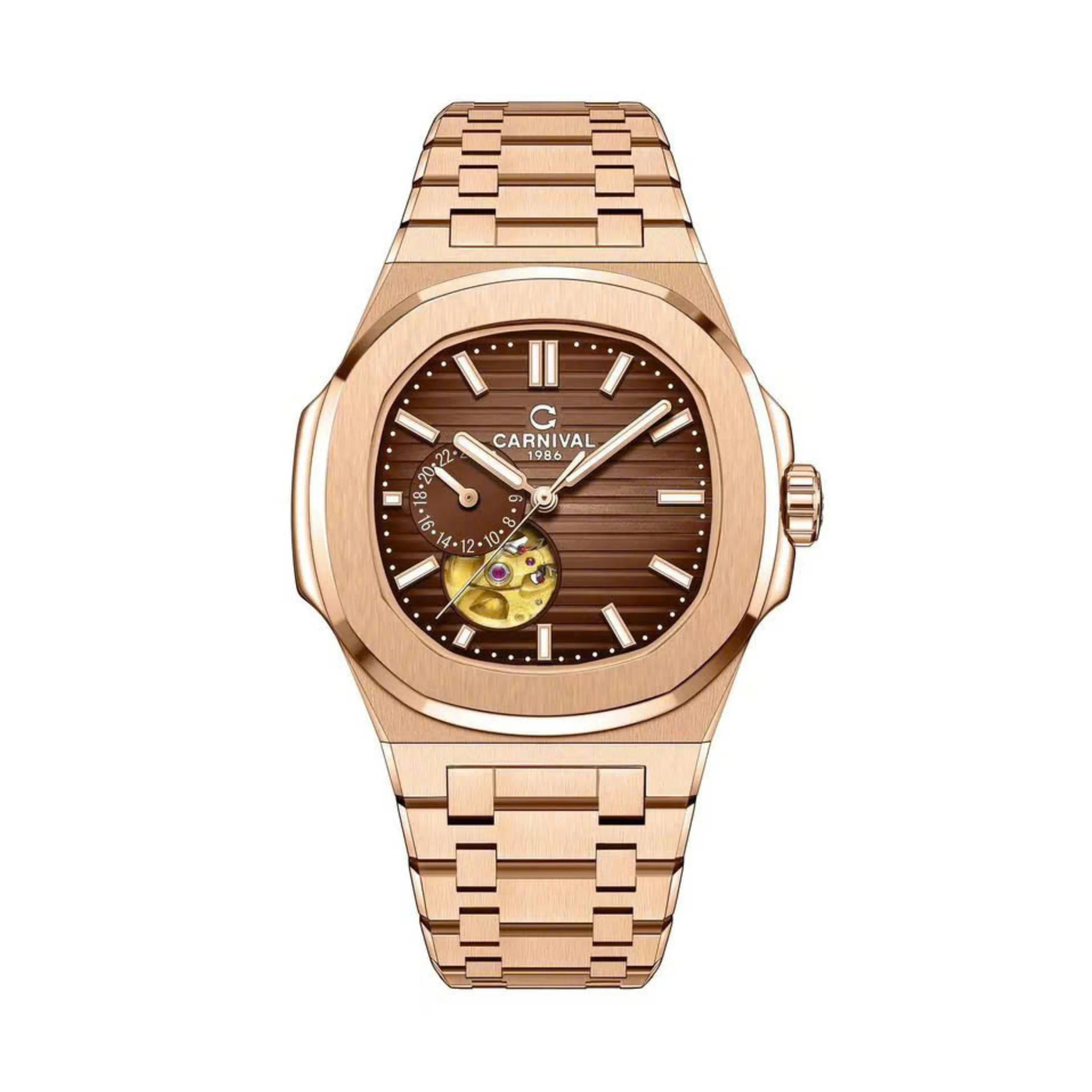 Thông số sản phẩm – CARNIVAL 8159G-VH-N Thương hiệu: Carnival Đối tượng: Nam Kháng nước: 3atm Loại máy: Cơ Chất liệu kính: Kính Sapphire Chất...